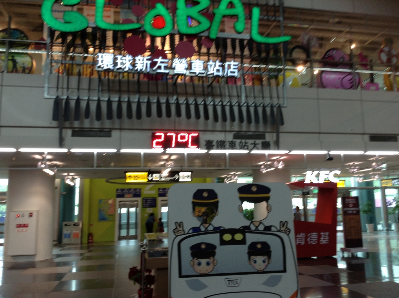 高速鉄道で、左営駅で降りました。この駅、台湾鉄道では「新左営」、高鉄と地下鉄では「左営」と違う名前で呼ばれていますが、つながっています。台湾鉄道の「左営」は別の駅を指しています。まぎらわしいですね。駅ビルがショッピングモールになっているし、直結して三越があるし、買物や食事もできます。駅ナカに、土産屋、弁当屋、ドリンクスタンドもあります。