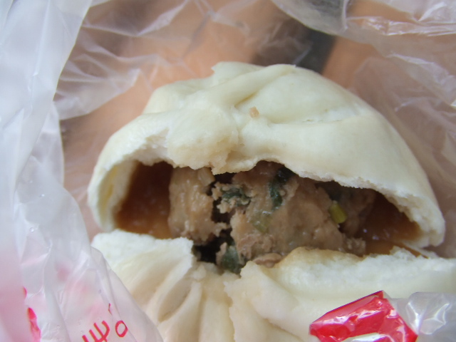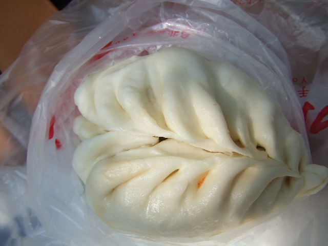 鮮肉包と高麗菜包と言うのを買って(各40元)みました。あったかいうちに食べるとふわふわでおいしいです。テイクアウト店なので、北京ダックを一緒に公園で食べました。