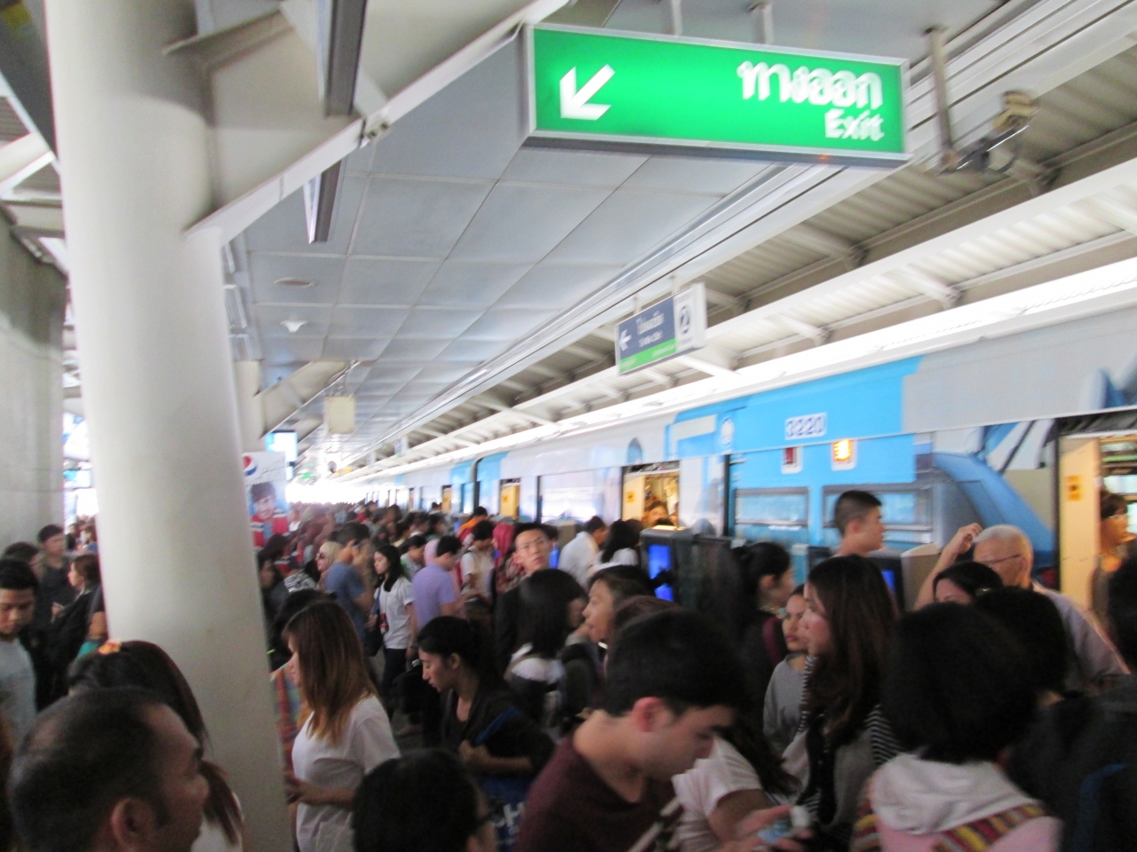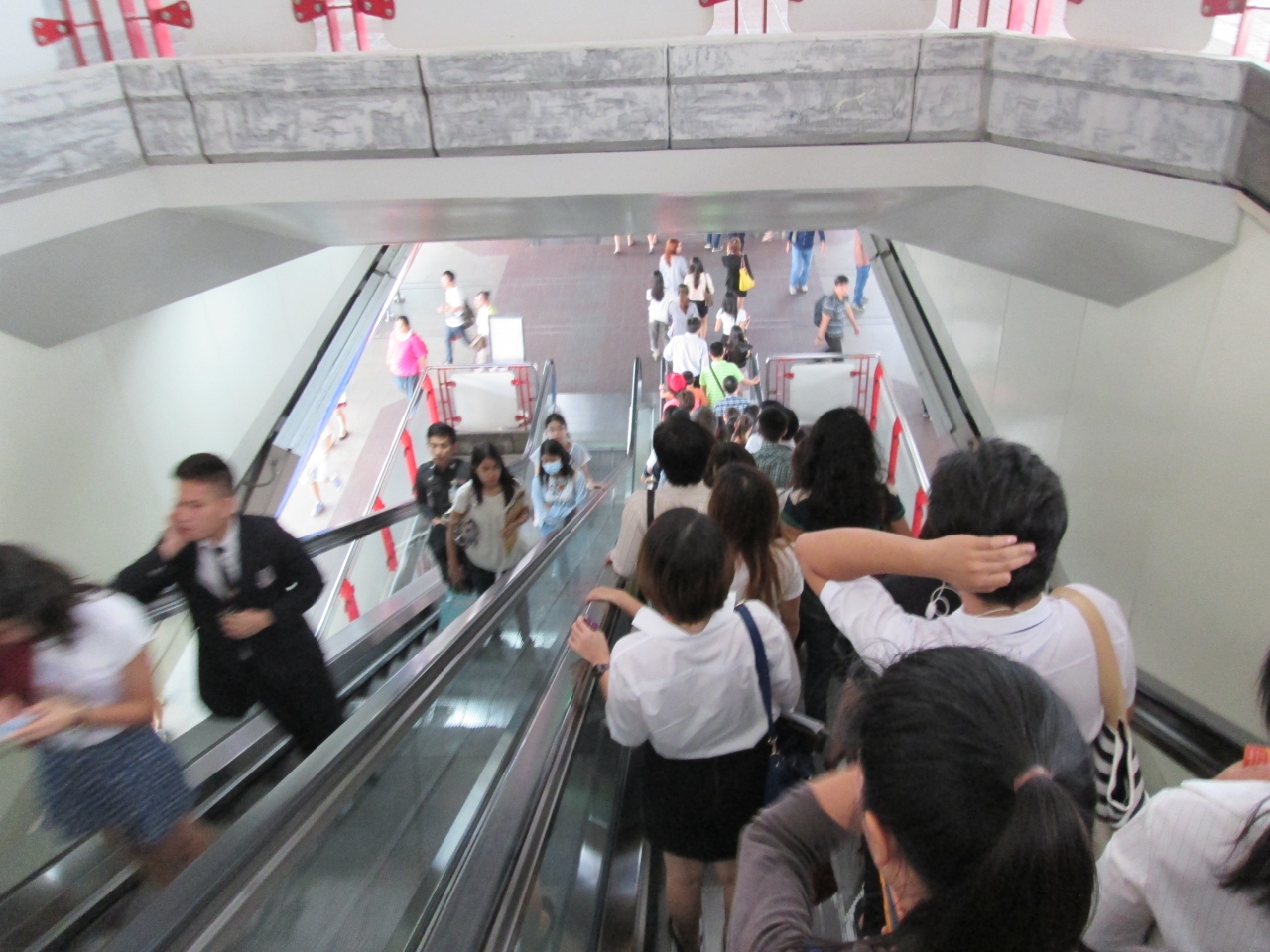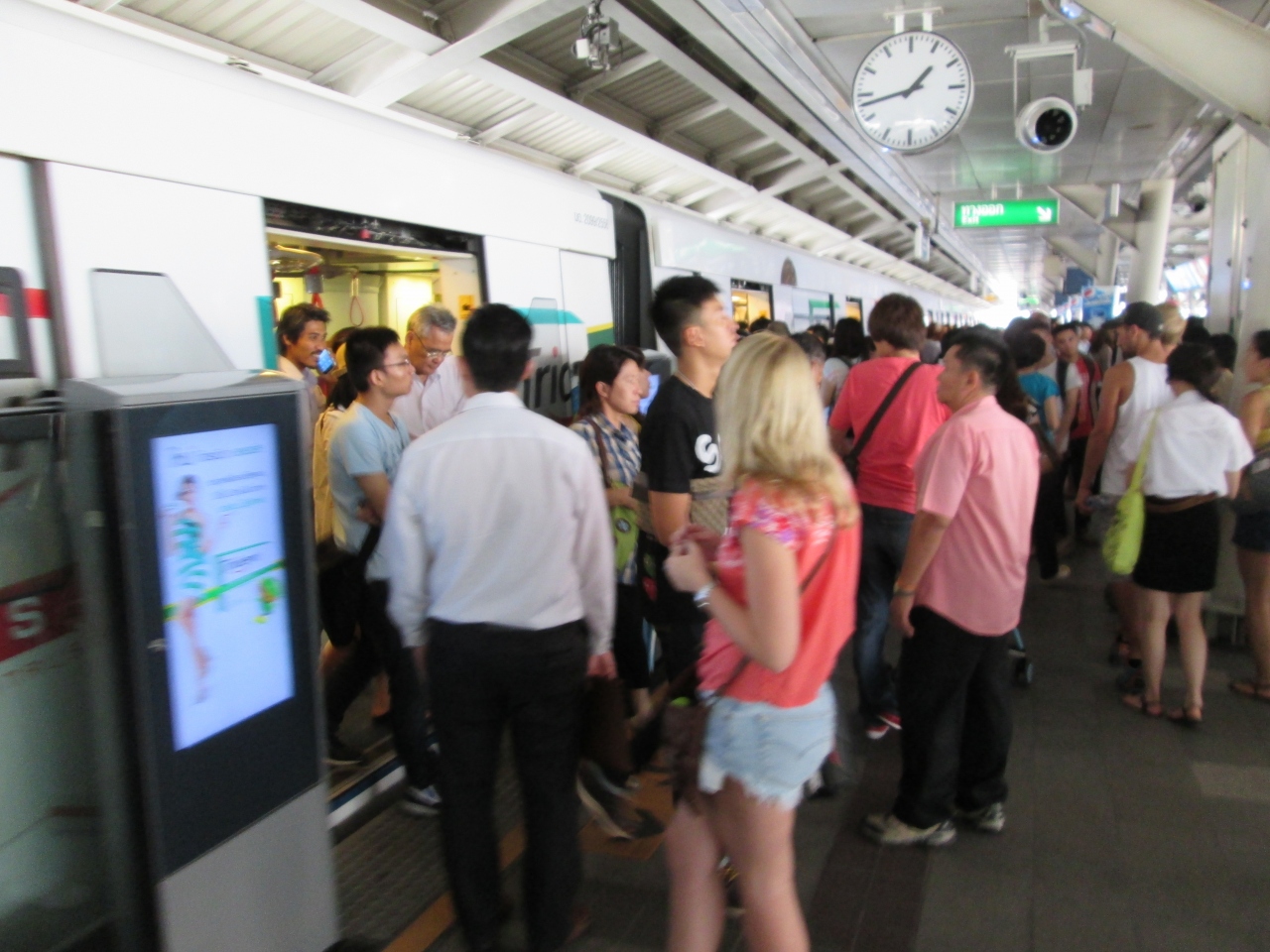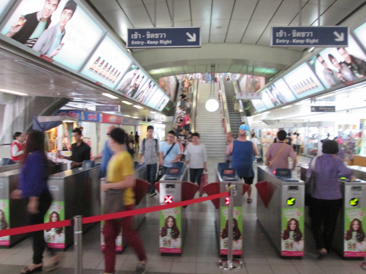 BTSではもっとも乗降客が多い駅です。写真は通勤時間帯ではなく、金曜日の日中に撮影したものです。乗降客が多いことを勘案して、ホーム上には安全柵がありますが、東京の駅やMRTの駅ように閉じることはありません。