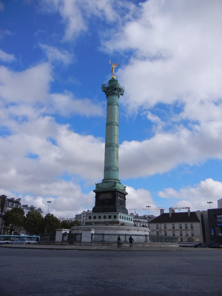 駅前のバスティーユ広場には、革命の犠牲者を追悼して造られた七月革命記念碑