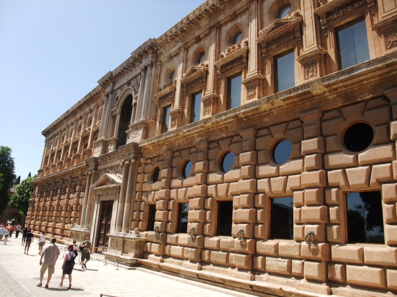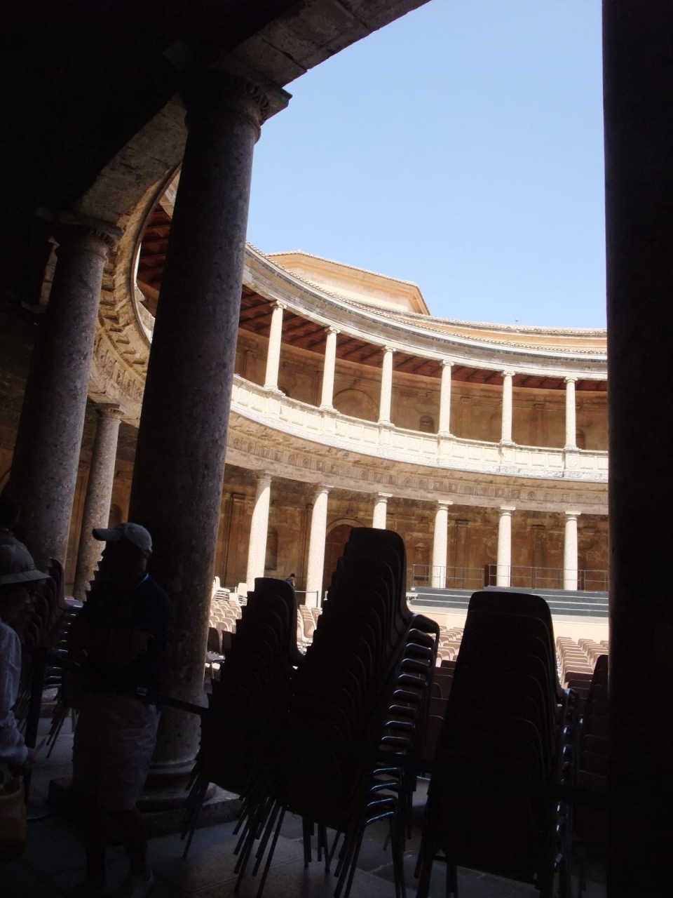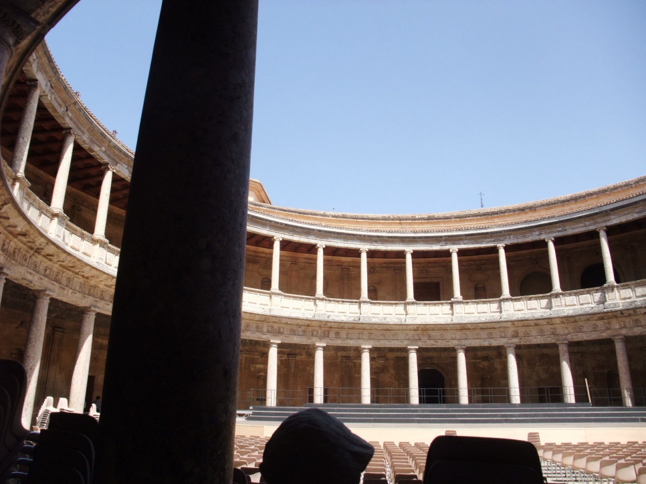 アルハンブラ宮殿は、最も古い城塞部分であるアルカサバ、王の居城であった王宮、カルロス5世宮殿、夏の離宮ヘネラリフェ庭園の4つに大きく分けられますが、この内、カルロス5世宮殿は、スペイン王となったカルロス5世によって16世紀になって造られたものです。この建物は、王の死後、未完のままだそうです。