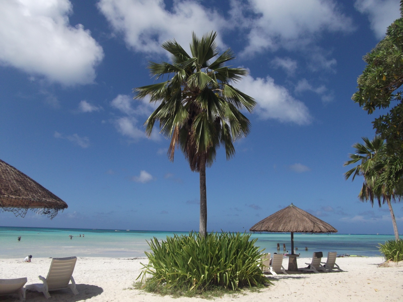 ずーっと遠浅で、眩しい陽射しに照らされた砂は真白。