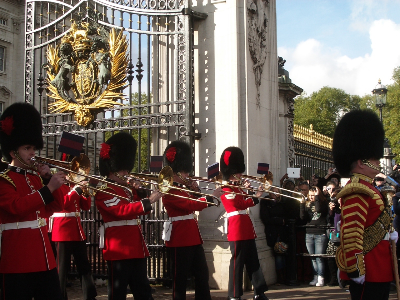 イギリス旅行の目的の一つにこのパレードを見る事でした 少し早めに一番の見物スポット正面門の左を陣取って見物してきました オフシーズンは毎日パレードが開催されないので要注意です 門が開きパレードが目の前を歩いて行く姿は感動でした