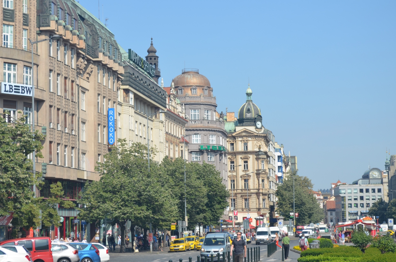 プラハ本駅から市内に向かう途中にある最初の大きな広場、それがバーツラフ広場。国立博物館から旧市街方面に緩やかに下ったバーツラフ広場は新市街に位置するが、それでも広場は100年以上の歴史を持ち、歴史あるホテルが立ち並び趣がある。バーツラフ・ハベルが国立博物館のバルコニーから演説し、この広場に絨毯が敷き詰められたように一杯の国民が集まったことで有名な広場