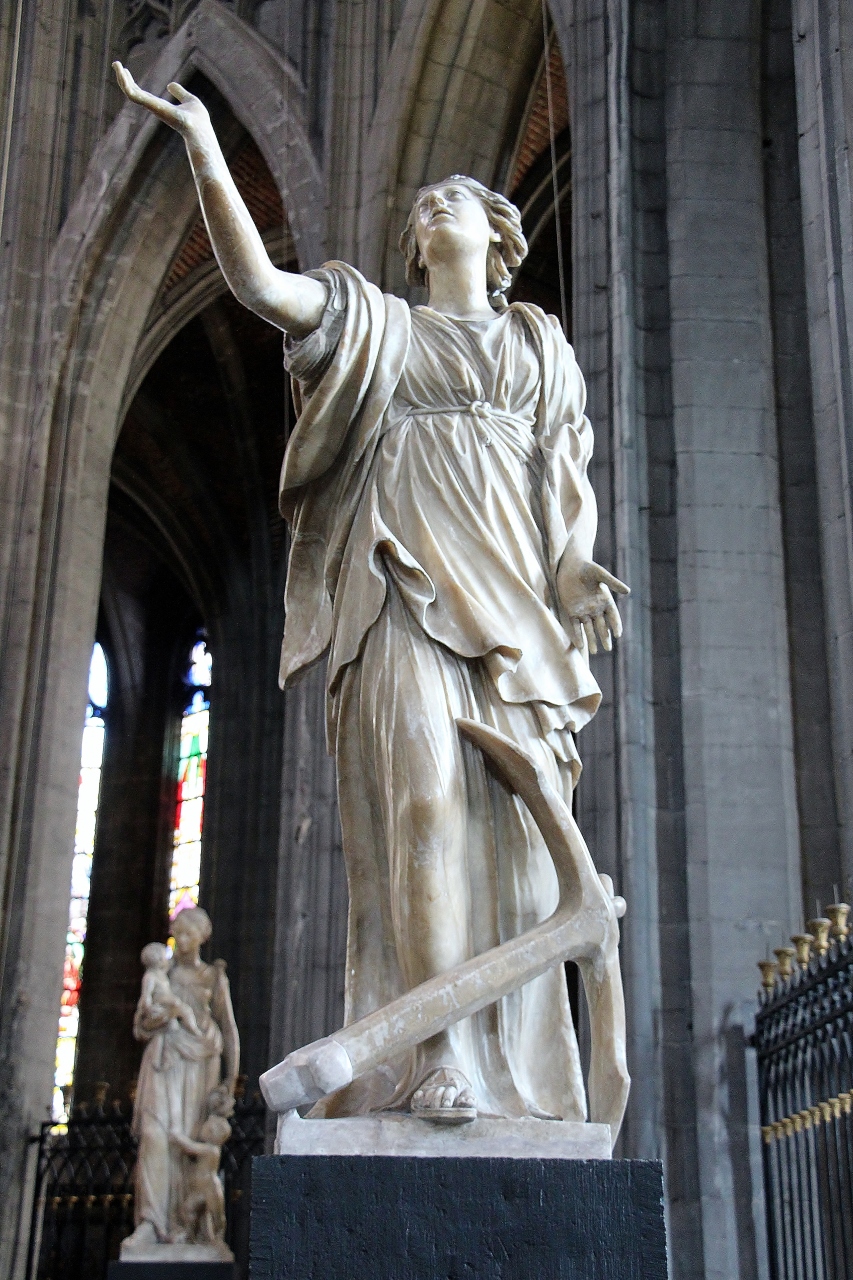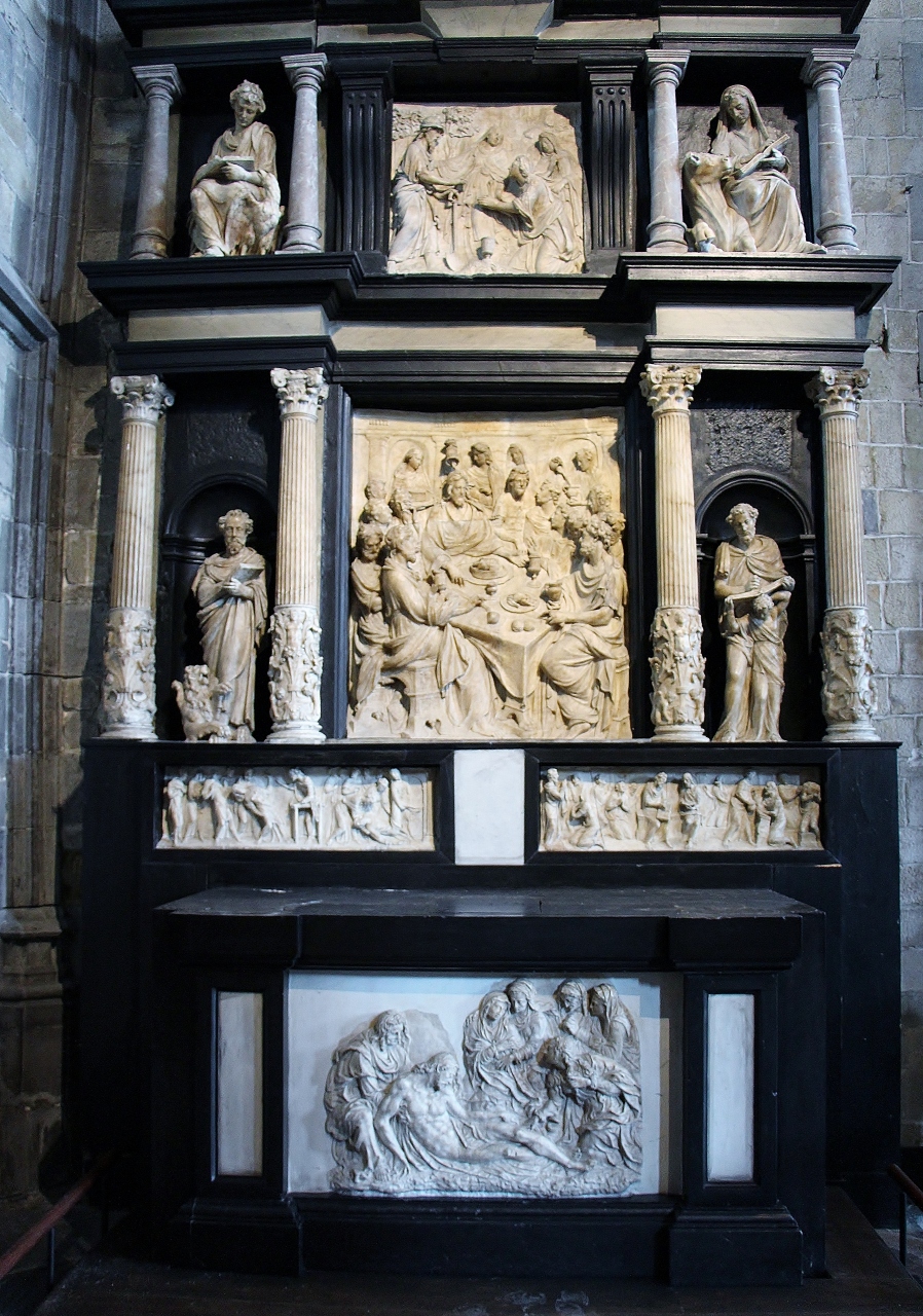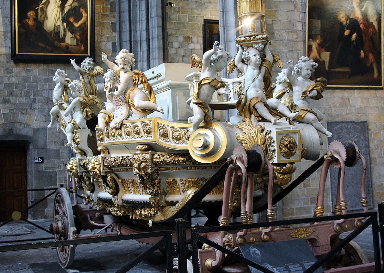 モンスの町では、「グラン・プラス」や、世界遺産の「鐘楼」と並ぶ、観光のポイントです、紀元7世紀の聖女「ウォードリュ」に献じられた教会で、15世紀~17世紀にかけて建てられた教会、姿かたちも「端正」で美しいですけれど、内部の彫刻群や、小礼拝所の祭壇のレリーフが素晴らしく、時間をかけて見物する価値は有ります。