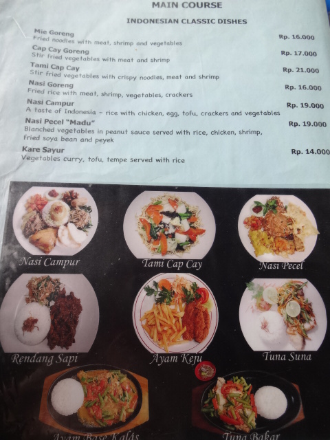 お料理は、どれも良心的な価格設定で、ナシペチェル(Nasi Pecel)は19,000R、空心菜炒め(Ca Kanpung)は11,000R、サービス料は取られませんでした。