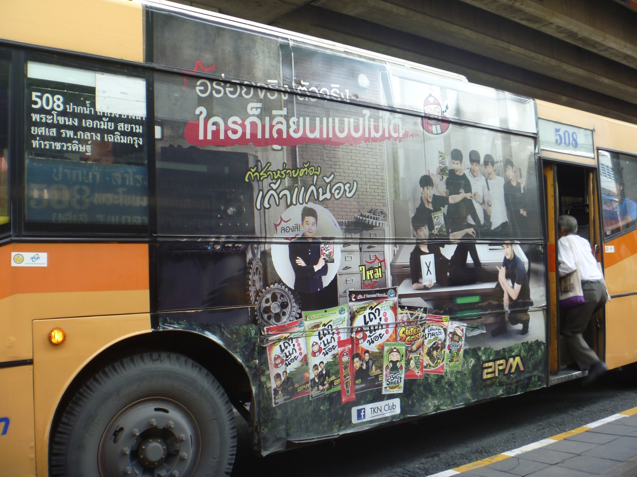 無料バスと有料バスがあります。有料といっても6バーツですが。