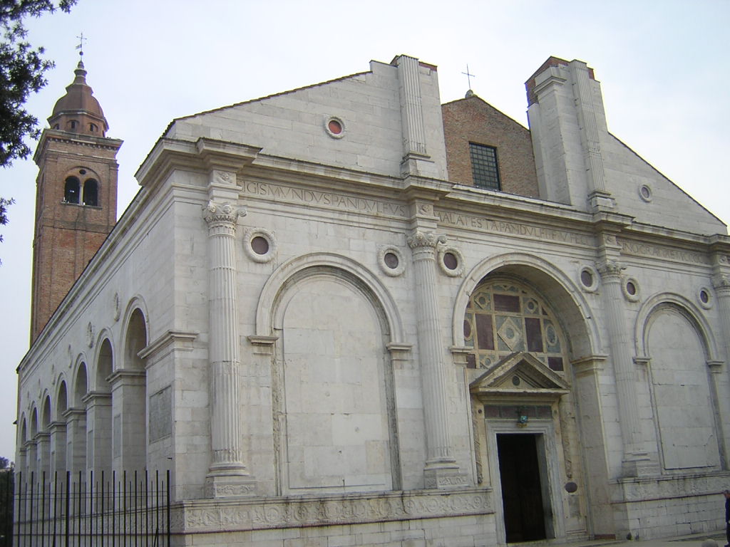 リミニの大聖堂で、旧市街地にあります。外観も内部も特出すべき物でもないのですが、ピエロデラフランチェスカの絵画が無料でみれるというのはファンにすれば、是非訪れてみたい場所かも知れません。ファサードの入り口のアーチの大理石の色使いは可愛いです♪