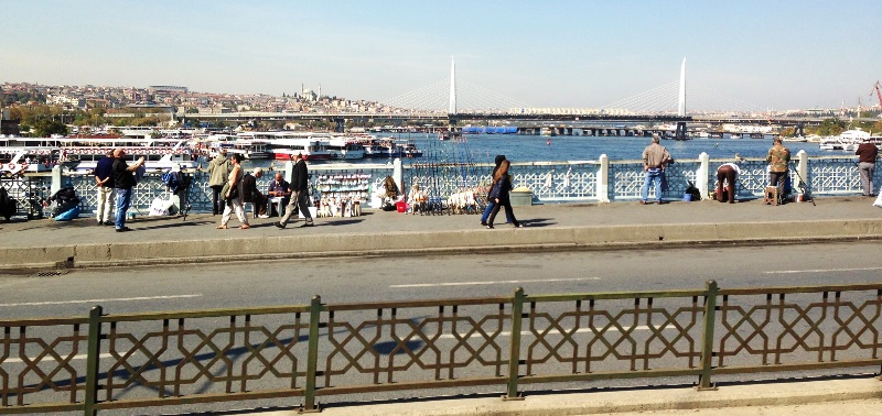 新市街と旧市街を結ぶ橋です。歩いても渡れるようですが、トラムヴァイに乗って通過しました。ガラタ塔からもよく見えます。この近くに、サバサンドの屋台が出ています。夕暮れになると、この辺りはとてもいい雰囲気になります。