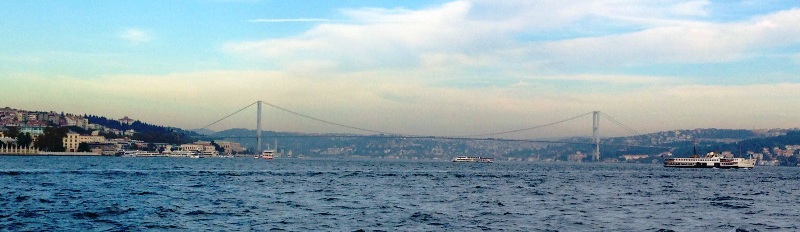 アジア側のカドゥキョイから、フェリーに乗って新市街のカバタシュに向かう途中で見えました。これが、ボスポラス大橋か...と思った位で、とりたてて個性のある橋ではないと思います。日本にもこのような橋はあちこちにあるかな。