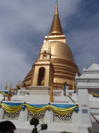 建物がいくつかに分かれていて真ん中には金色の鐘と言うかベル見たいなタイの寺院特有な屋根の建物が有り、その周りをまわってお祈りをするみたいでした。