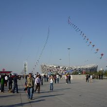 広い、とにかく広いのです。北京五輪のメイン会場になり圧倒的なスケールの開会式が開かれたのがここです。今は、周りの広大なエリアを取り込んで、市民が凧揚げに興じたりなごめるスポットになっています。