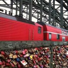 ケルン中央駅からお隣のケルンドイツ駅までの間のライン川にかかっている橋です。間近にドイツ鉄道の列車を眺めながら、のんびりとお散歩をするのによい場所です。橋にはカップル達の鍵がたくさんかかっています。ただし、ケルン中央駅からあるいた場合、お隣のケルンドイツ駅にはこれといったものもなく、カフェも駅構内にマックがある程度です。行きはよかったのですが、帰りは列車に乗り中央駅に戻ってきました。