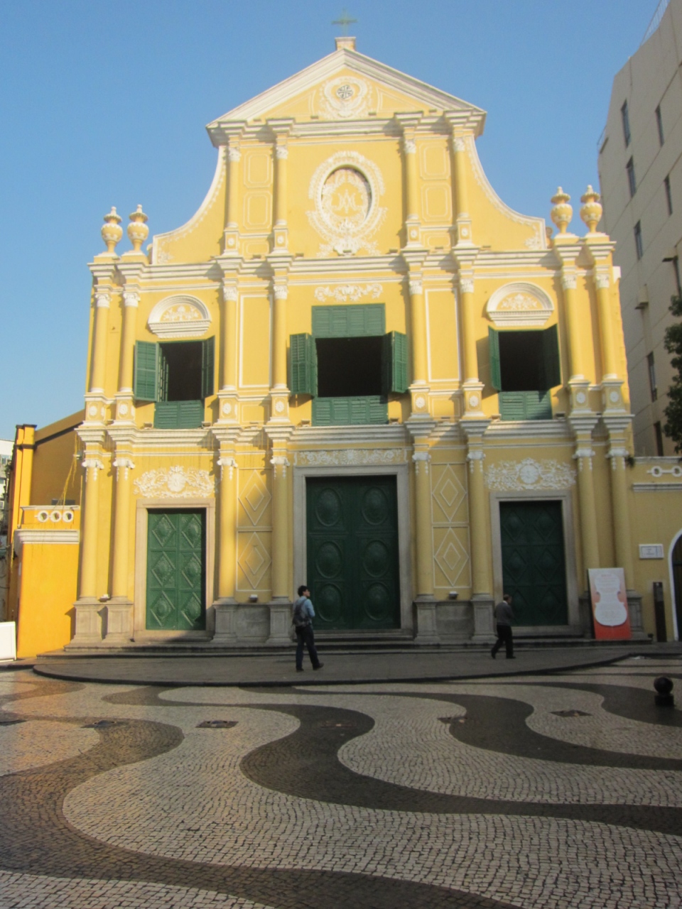 床の模様とのコントラストがよく、教会前の大きな木でのんびりしている地元の方も多くみえました。