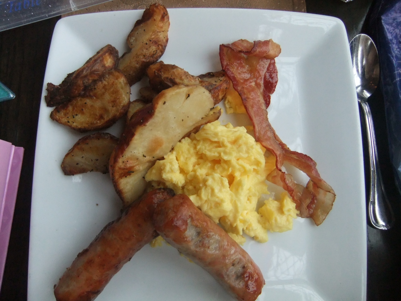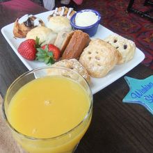 2階で食事をします。思っていたより広く朝だったので窓から光が差し込んで雰囲気がよかったです。メニューは何種類か選べました。
