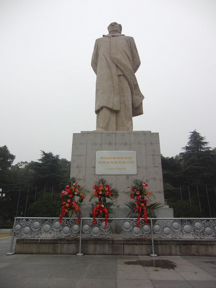 岳麓山の南大門ゲートに通じる道は、まず巨大な毛沢東の像から始まります。長沙は、毛沢東ゆかりの土地なので、あちこちに毛沢東がいます。