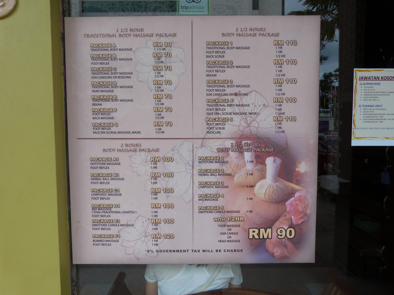 コタキナバルの街中にある人気のマッサージ屋さんに行ってみました。