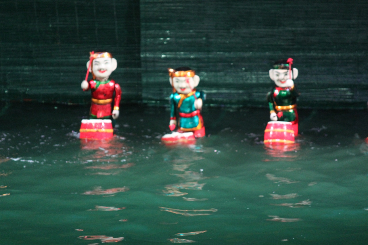 水上人形劇鑑賞当日の昼にチケット売り場に行ったら、最後の夜9時だけしか残っていませんでした。席は一番後ろ。劇の概要が記載された日本語パンフレットはありますが、劇はベトナム語なので、詳細な内容はわかりませんでした。でも、人形劇と民族音楽は意外とよかったです。