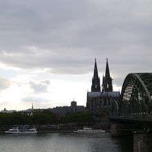 正面からの大聖堂も勿論良いのですが、この橋とライン川を入れた構図は絶景です。