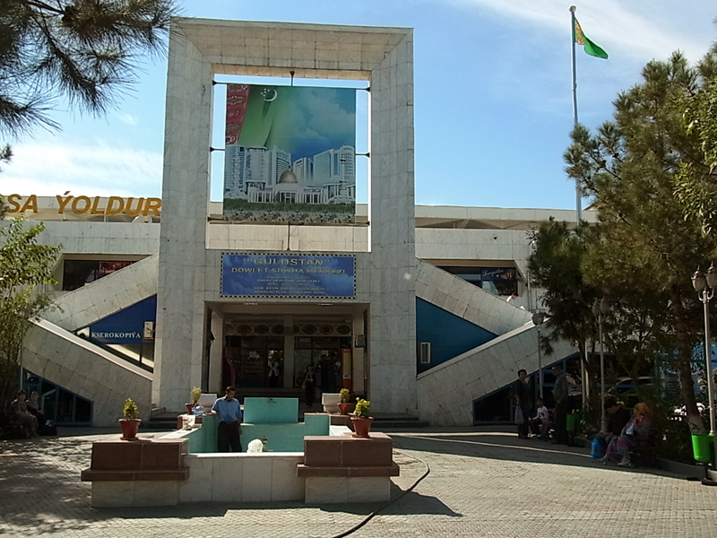アシガバードの中心に位置し、外国人向けの高級ホテル「Grand Trukmenistan Hotel」や英国Pubにも近く、デパートの至近です。