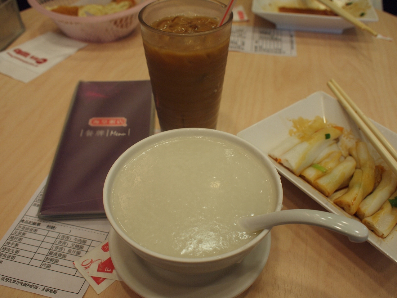お粥、干しエビの入った腸粉、ミルクコーヒーでした。