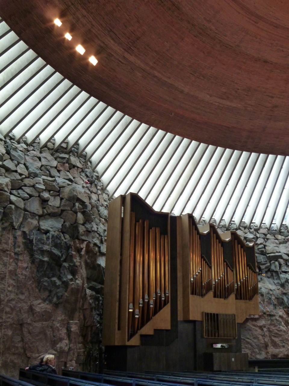 テンペリアウオキ教会は、岩盤をくり抜いて作られ、1969年に完成したルーテル派の教会。外から見ると、岩だらけの地盤の丘の一部にドーム型の天井がわずかに顔をのぞかせているだけです。
