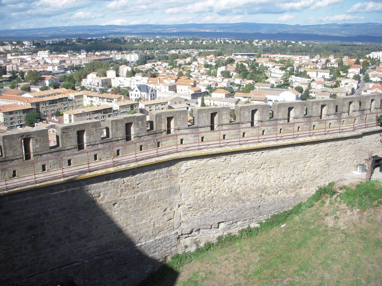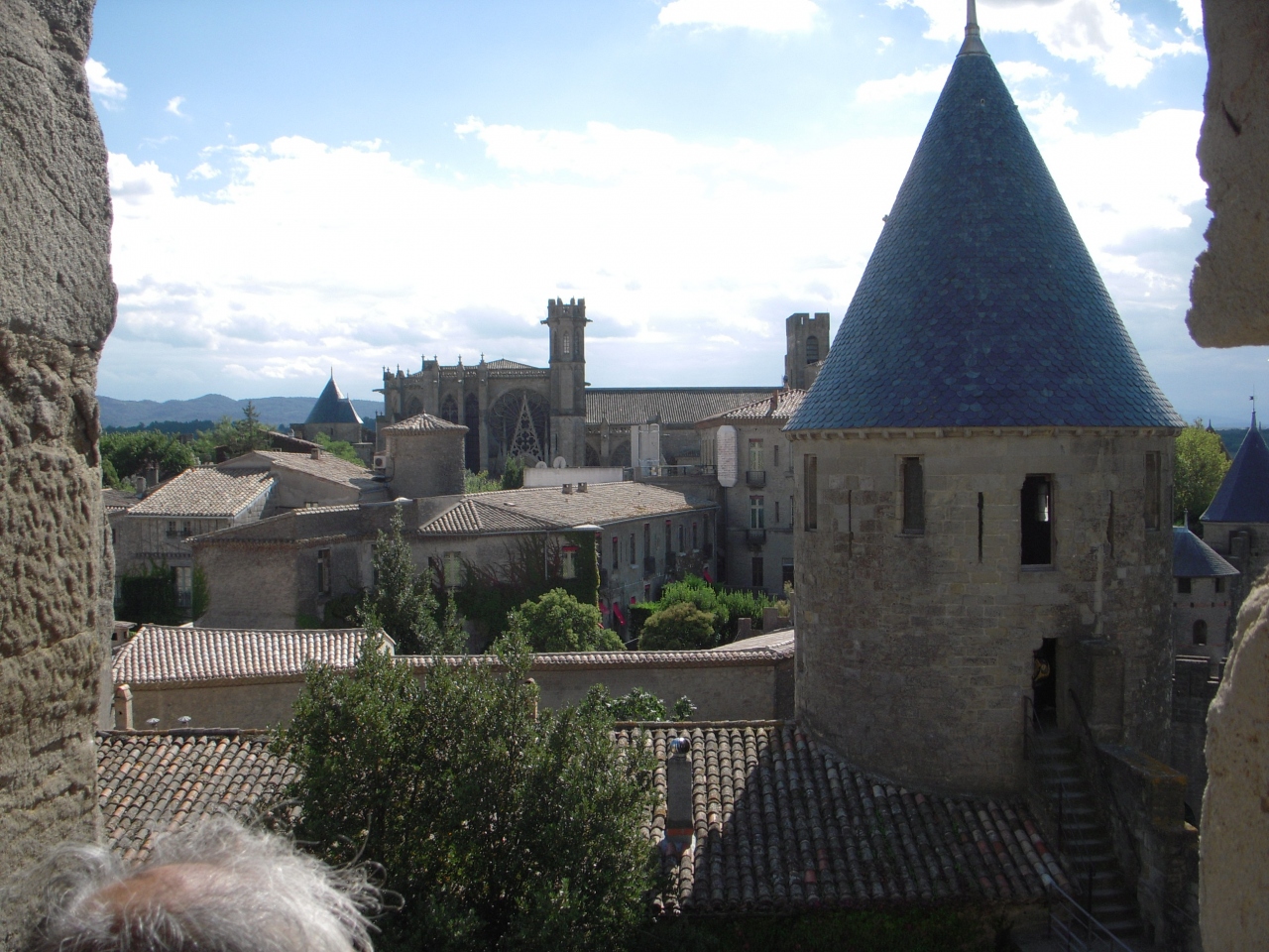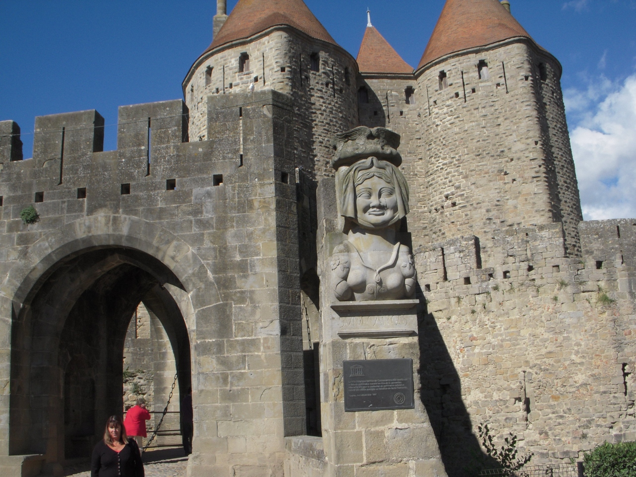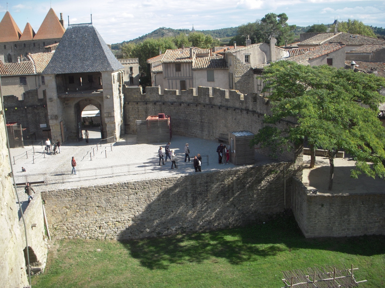 カルカッソンヌの城塞の威容を見上げると、圧倒されるような存在感があります。