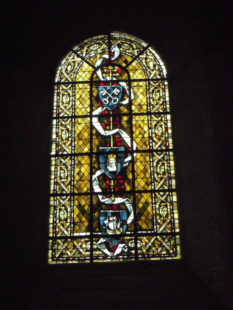 入り口にあるステンドグラスが印象的でした。