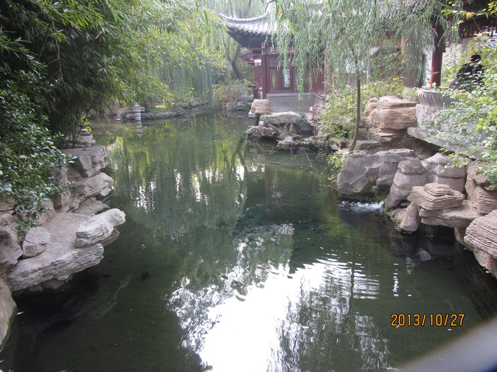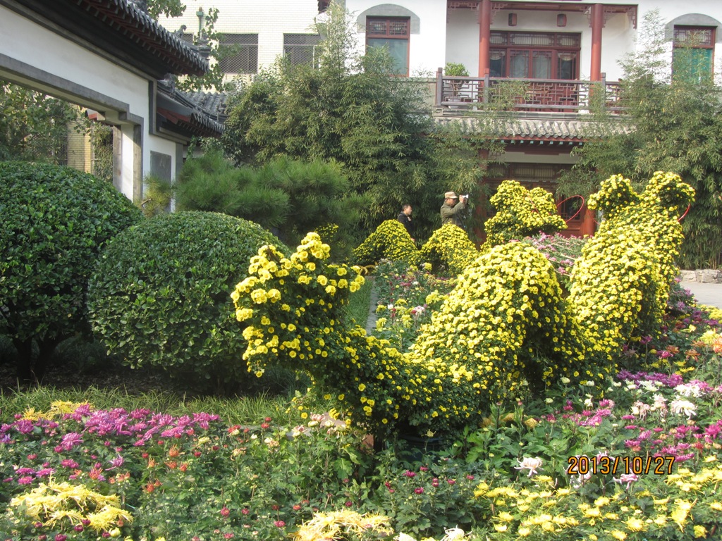 また 園内は、伝統的建物が点在し、中国神話に登場する君主を祀った道教寺院があったし、京劇も演じられて、秋の日を楽しむ人でいっぱいでした。