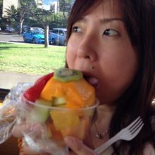 あふれ出そうなくらい、盛りだくさんのフルーツです。