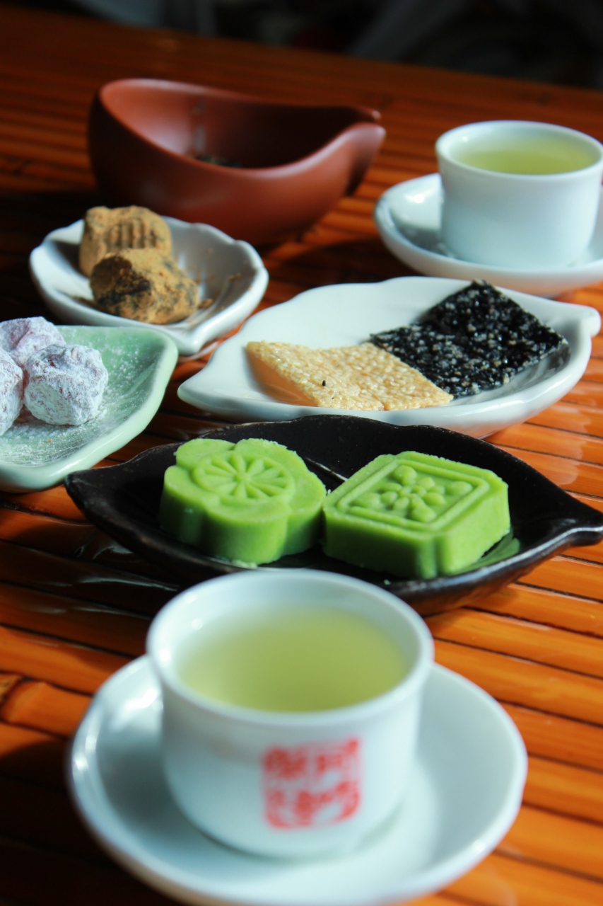 お願いしたのはお花の香りと淡い緑の高山烏龍茶とお茶菓子のセット。