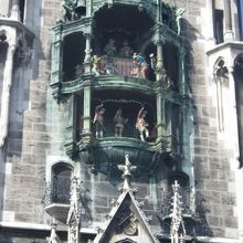 毎日11:00、12:00(3~10月は17:00も)から約10分間、華麗なダンスや演奏で楽しませてくれますし、21:00にはミュンヘン小僧Munchner Kindlがおやすみのあいさつに現れるそうです