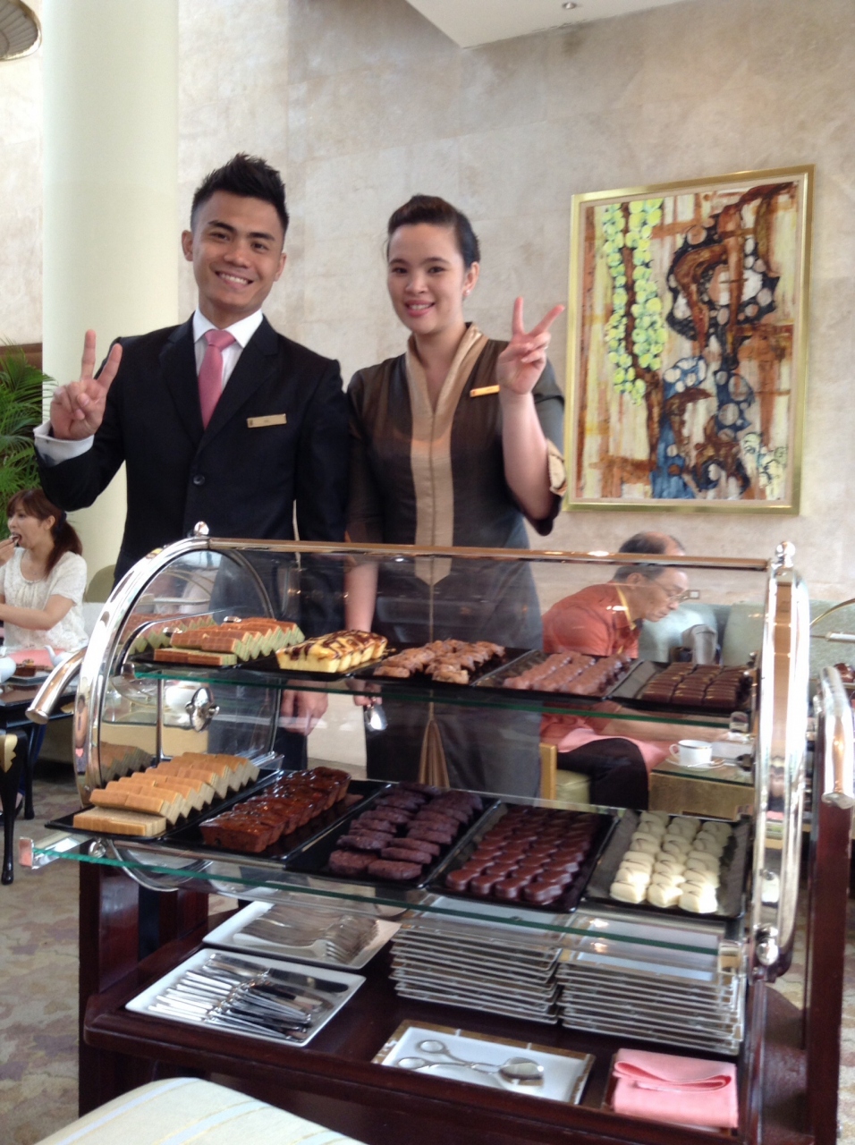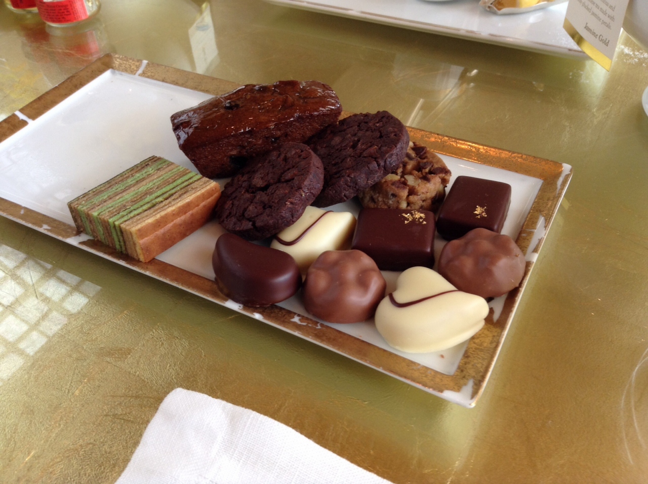 ガラガラと大きなトレイでチョコやらクッキーがやってきます