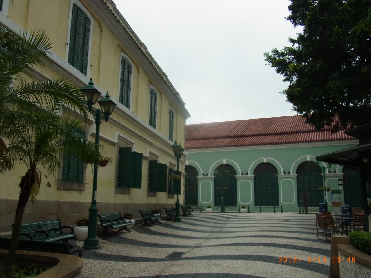聖オーガスティン教会、ドン・ペドロ5世劇場、聖ヨセフ修道院とロバート・ホー・トン図書館などの建築物に囲まれた聖オーガスティン広場は石畳がとても美しい。ポルトガル語ではこの石畳のことを「カルサーダス」と呼ぶそうで、パステルカラーの建物群と南国風植物のある風景にマッチしていて、とてもきれいな広場だった。