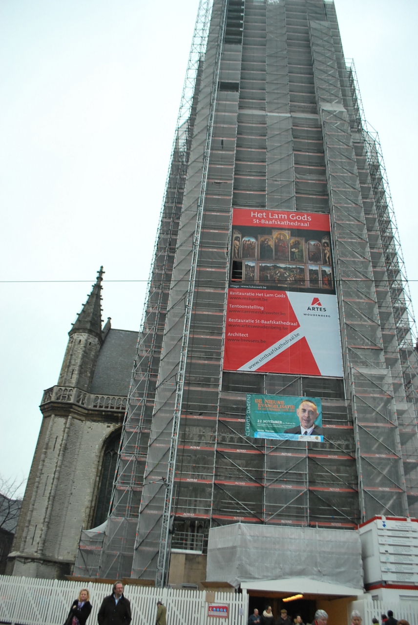 外側は塔の上の方まで工事中のため、ほとんど何も見えませんでした。入場料金無料でとても広い教会内を散策することができます。隅々まで見応えがあり、特にルーベンスの絵画が良かったです。ハープを弾くおじさんがいて、CDを販売していました。日本人の団体客のおばさまがみんな買って帰っていくのも納得な美しい音色でした。