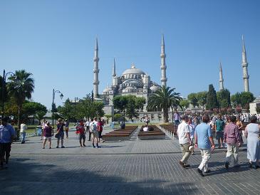 アヤソフィア博物館の見学後に行きました。スルタンアフメット広場を通過した辺りで「ブルーモスクへはこちらから」と案内してくれるスタッフがいたので迷わずに入れました。モスクの内部はシンプルな感じですが、イスタンブールを代表する建築物らしく、外観には圧倒的な存在感がありました。