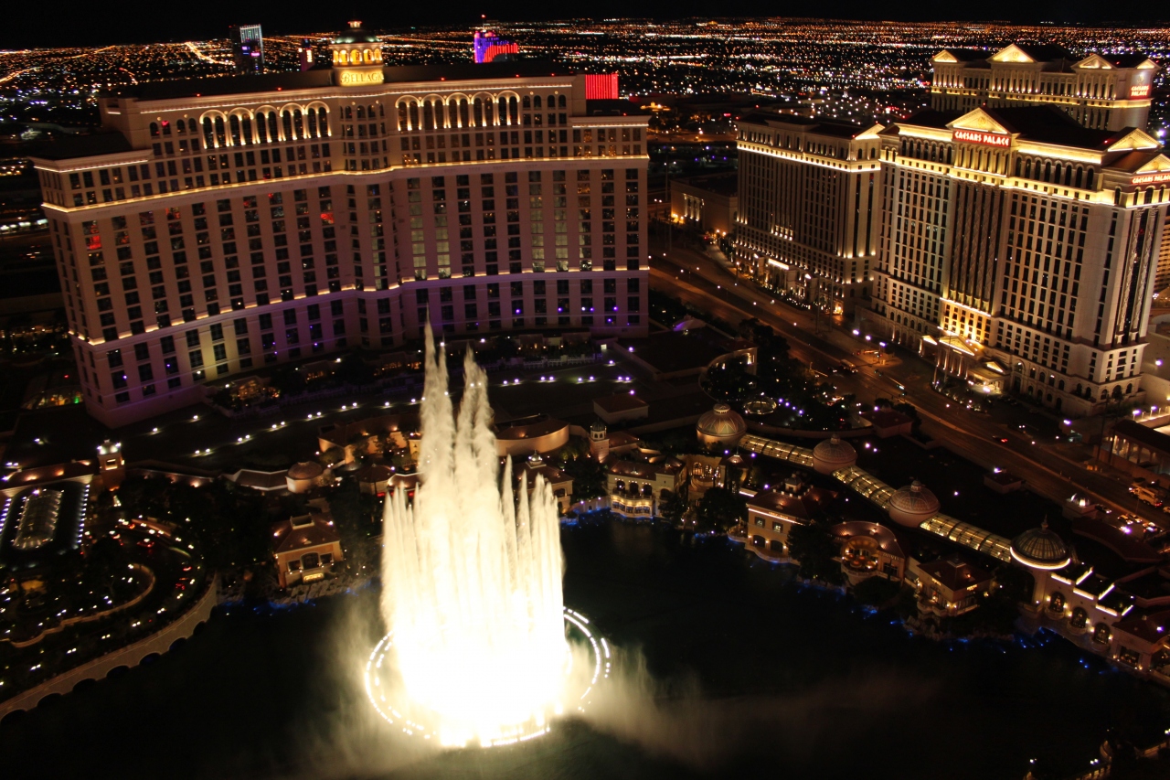 パリスの展望台にいたときにベラージオの噴水ショーが始まりました。地上から見るのと違ったよさがあると思います。地上バージョンも見たかったのですが、時間が合わずに見ることができませんでした。個人的には、夜の方が建物ライトアップとマッチしてよいと思います。