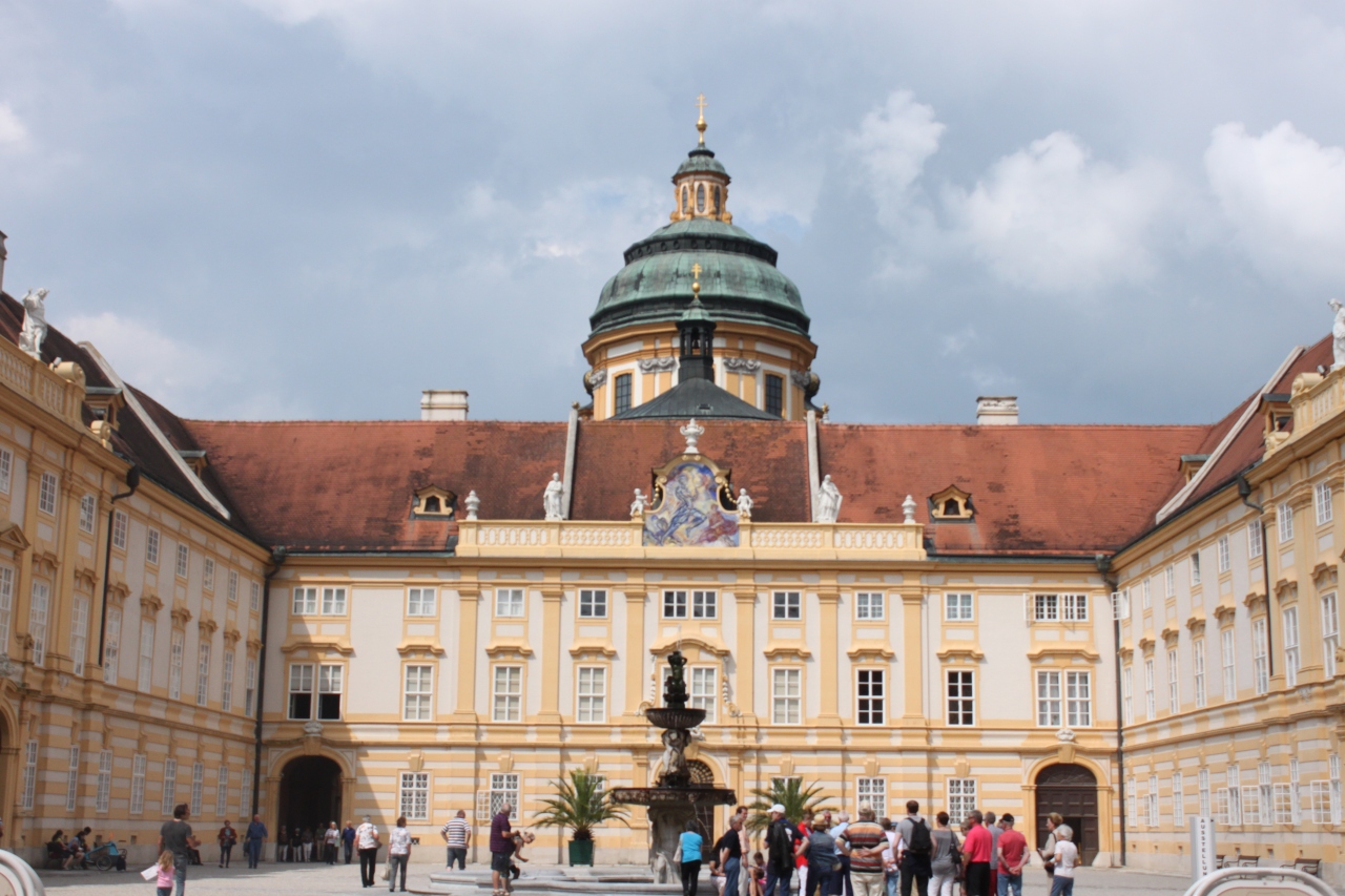 メルクの駅から坂道を上って10分くらいかかります。英語のツアーに申し込んで見学しました。見学の前半は修道院の所蔵品を案内して、後半から修道院の内部を案内していました。書庫は撮影禁止ですが、修道院の中の装飾は素晴らしかったです。