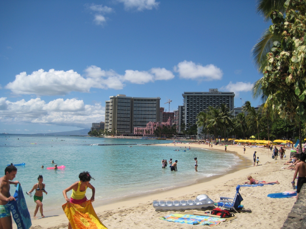 ワイキキはワイキキで良いビーチだと思います。海沿いのホテルからは近くて、朝おきて泳ぎに行くときにはとても便利です。サンセットの時なども海やホテル街が風景に溶け込んでいて、それはそれでワイキキの夕暮れを醸し出しています。とても雰囲気のあるリゾートビーチですね。昼のビーチには行ったことがありませんが、暑すぎるのかなと思って敬遠しています。