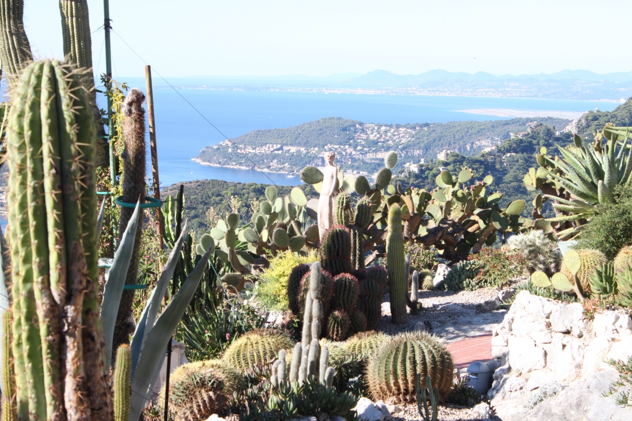 ニースから路線バスに乗っていきました。バス停から10分くらい歩くと、海が見える絶景ポイントに出てきます。熱帯庭園なので植えてある植物はサボテンがメインです。絶景ポイントには観光客が次々と訪れて写真を撮っていました。