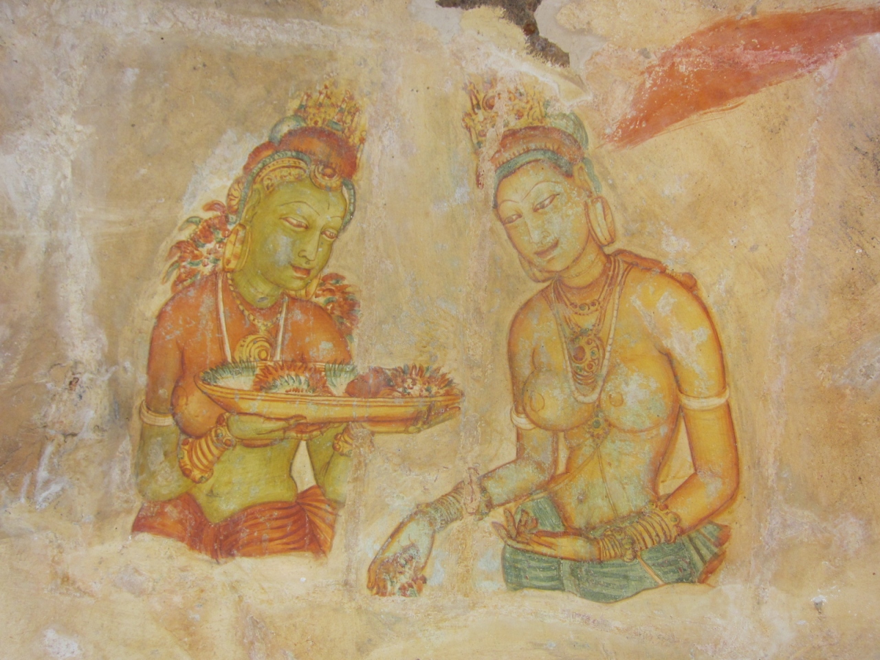 螺旋階段をぐるぐる上り、目が回った頃にシーギリヤレディが描かれた壁画に到着します。あまりにきれいに残っているので感動しました。本当にきれいです。