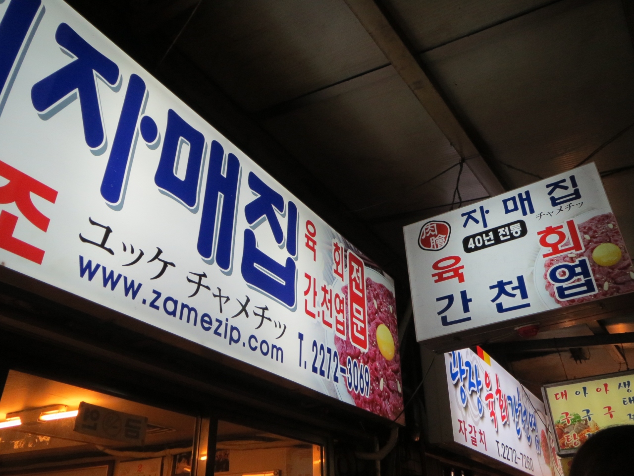 日本では食べられなくなってしまったレバ刺しが食べたい。そんな思いで訪れたソウル。友人が選んだ店がこちら、東大門のチャメチッでした。