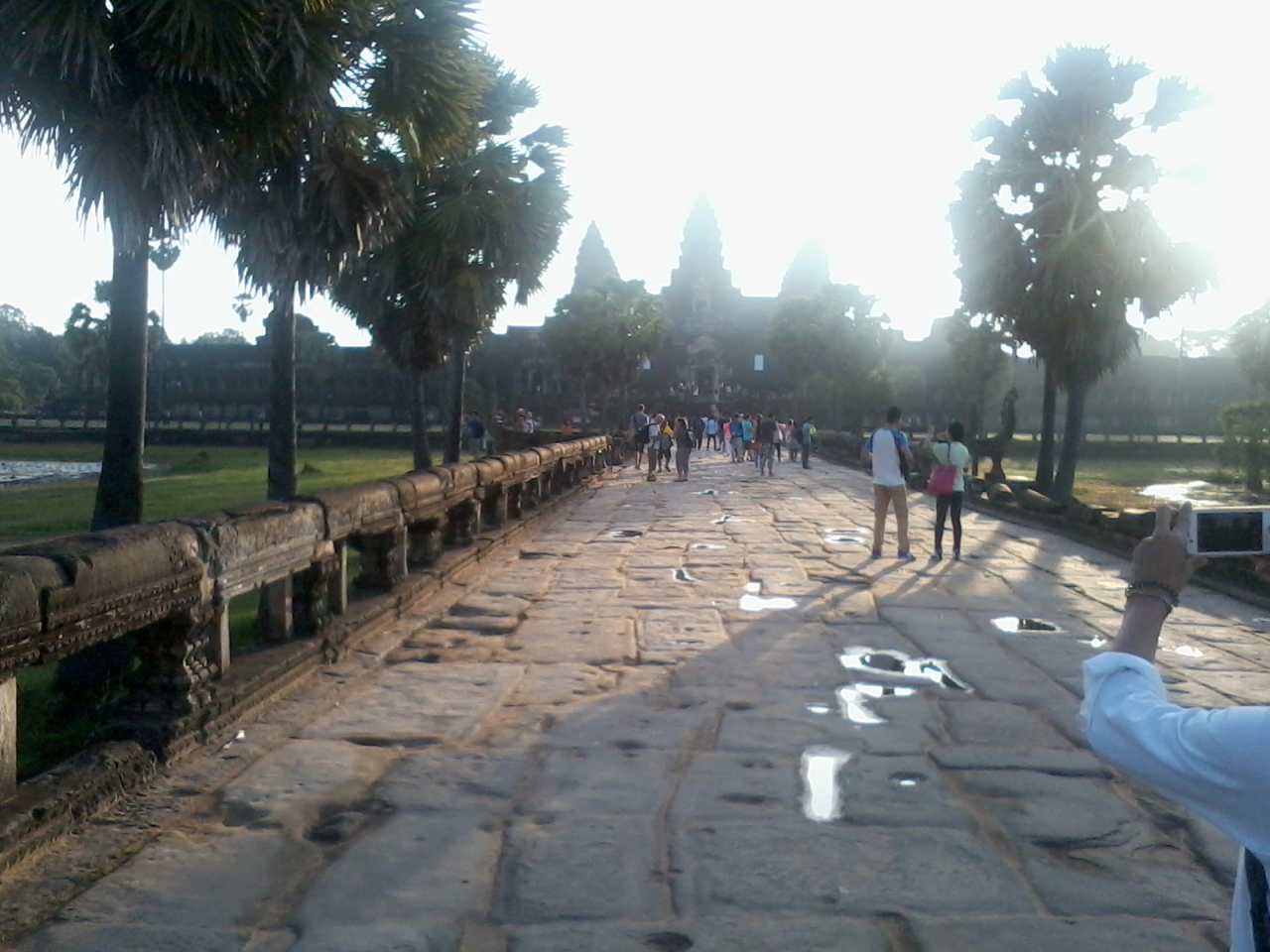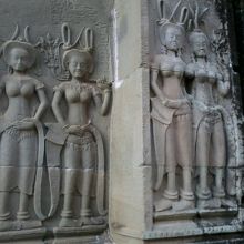 カンボジアの世界遺産アンコールワットです。この巨大遺跡には、壁などに多くの彫刻が施されています。入場料は一日券で20USD、3日券で40USDで、この料金にはその他の遺跡の拝観料も含まれます。周辺遺跡を含め自転車でも周ることも可能です。