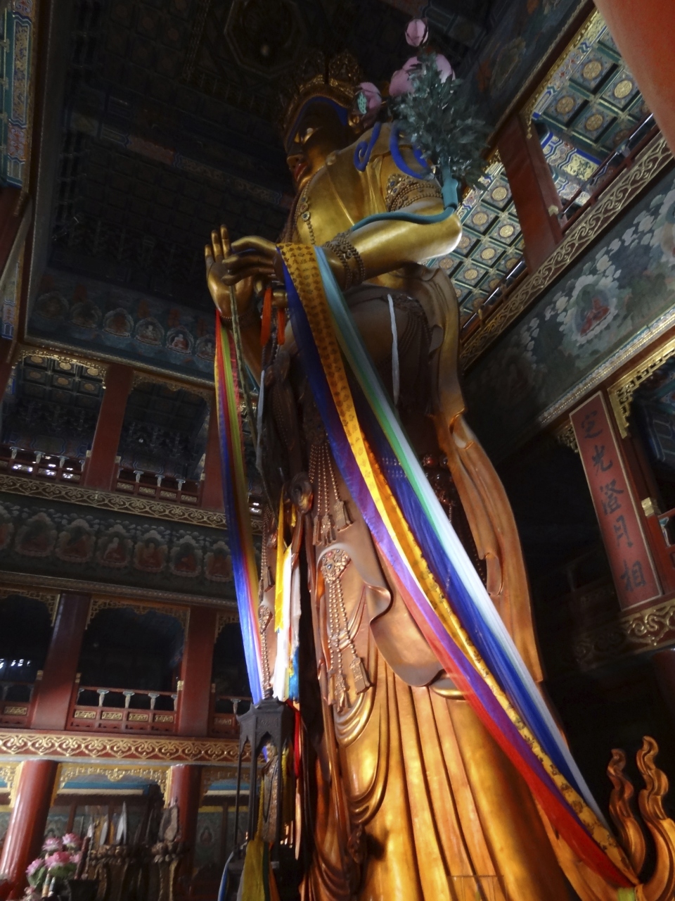 一番奥の万福閣には26m(地上18m地下8m)の弥勒仏があります。No Photoとなっていましたが、先にいたロシア人ツアーの一団がメチャ撮ってたので一緒になって撮りました。お寺の人もいましたが、外国人観光客には甘いのかもしれません。
