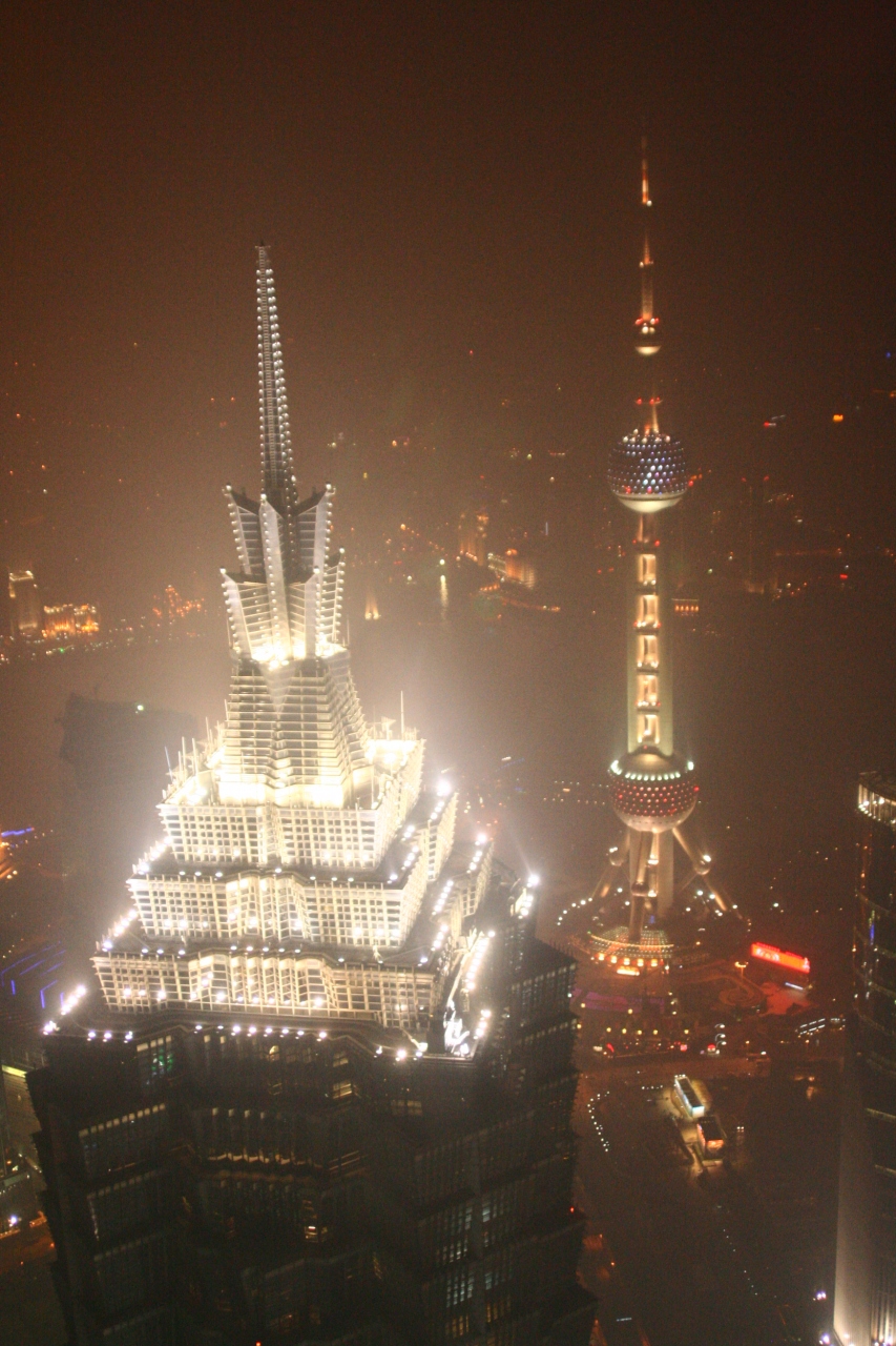 金茂大厦(ジンマオ)と東方明珠電視塔が下に見渡せるとっても高い展望台です。建物の中は近未来風でおしゃれです。結構モヤモヤしていたのですが、上から見た東方明珠電視塔は素晴らしいなと思いました。またビルの周りのライトアップも素敵で展望台を降りてからも楽しめました。