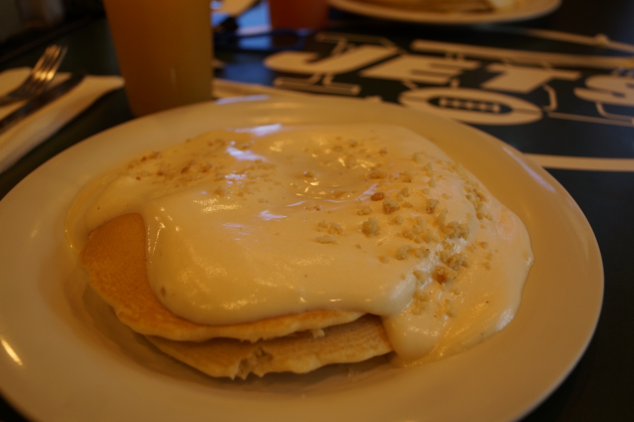 ホノルルからthe BUSの始発にのり、カイルアエリアに着いたら近くのレンタサイクルで自転車を借りて向かいましたが、すでに列が伸びていてにぎわっていました。この時点で30分待ちといわれました。しかし周りにベンチ等もあるのでそんなに苦痛に思わないほどで店内に案内されました。