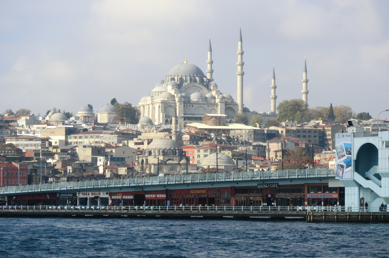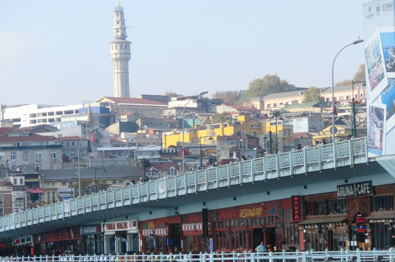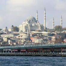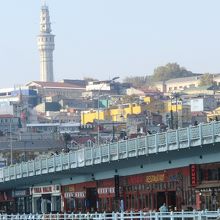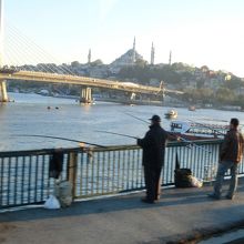 金角湾に架かり、旧市街と新市街を結ぶ2層式のガラタ橋。橋の上からは多くの釣り人が朝早くから夜遅くまで竿をたらしています。