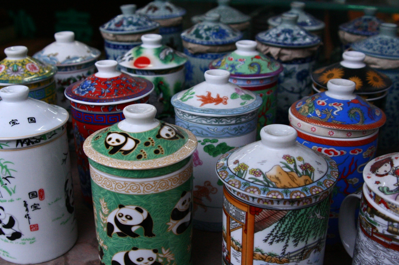豫園周辺ですが、観光客は豫園商城よりも少なめでローカルな人が多い印象でした。レトロな小物、雑貨がたくさん売っていて見ているだけでもとても楽しいです。中でもカラフルな模様の入ったお茶の蓋つきの湯のみが可愛かったです。