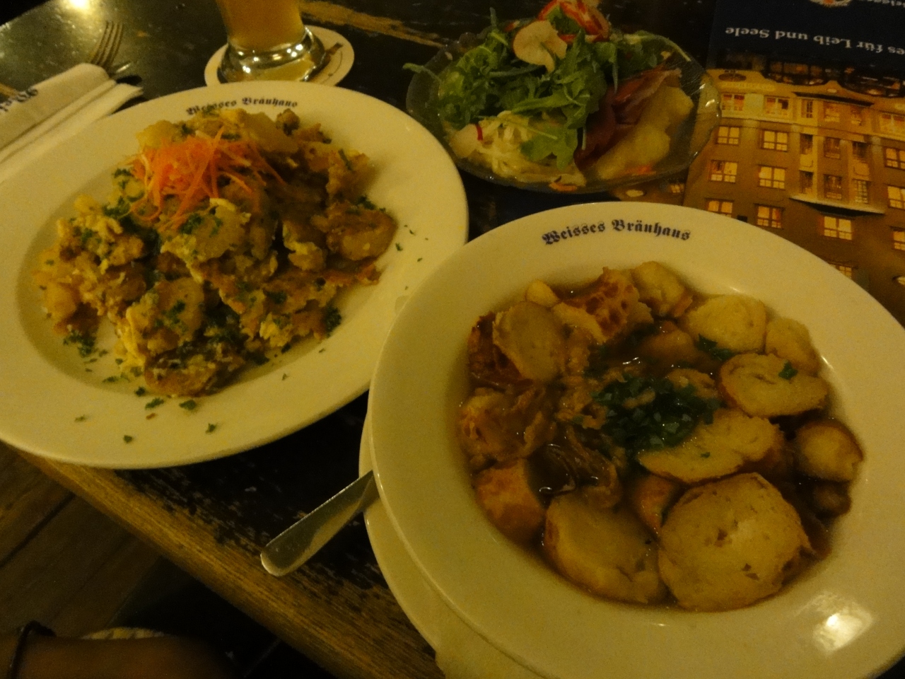 スープと5種のソーセージ盛り合わせとジャガイモの料理と・・・確か3種類くらい頼みましたが、ジャガイモの料理に別皿でサラダが付いてきたせいもあり、全然食べきれず(^▽^;)