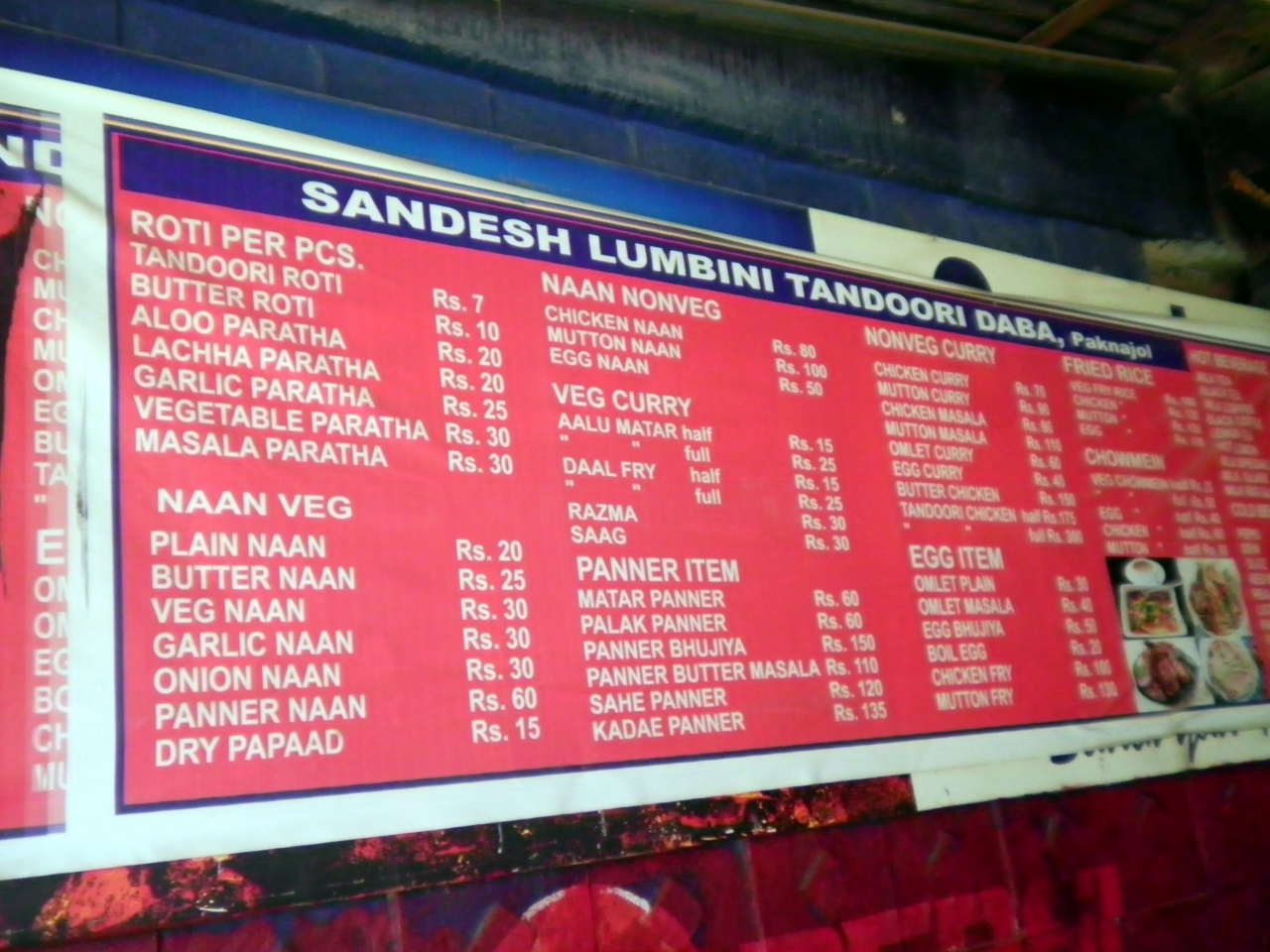 - 特に竈で焼いた焼きたてナーンはうまい。カトマンズで竈のあるレストランは希少。辛くないチーズ入りパニエ・パラックは外人にも人気あり。